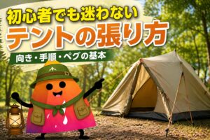 焚き火の準備ができたら、次は「キャンプ場選び」「持ち物」「テント設営」を合わせると初回キャンプがかなり楽になります。